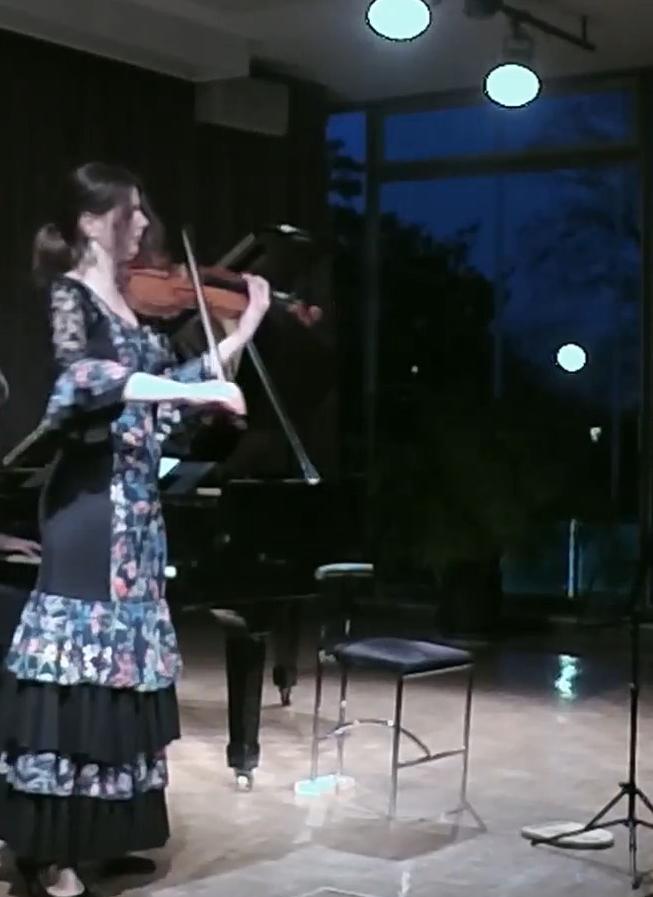 Katharina Cording infused passion and grace, lush tones, and Carmen-like coquettishness into the two Spanish Dances by Pablo de Sarasate amidst her spirited outbursts.