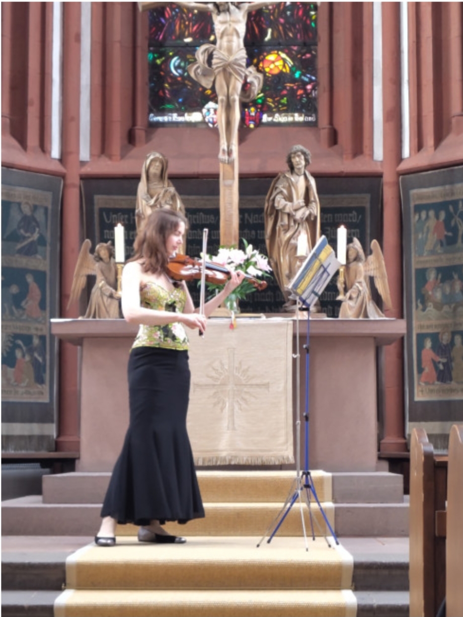 She has appeared in renowned venues and historically significant locations, such as the Gasteig München, the Meistersingerhalle Nürnberg, the Allerheiligen-Hofkirche in Munich, the Munich City Museum’s Musical Instrument Museum, the Dresdner Frauenkirche, and the Mendelssohn-Haus Leipzig. In Berlin, she performed twice in open-air concerts in front of the Bode-Museum.
